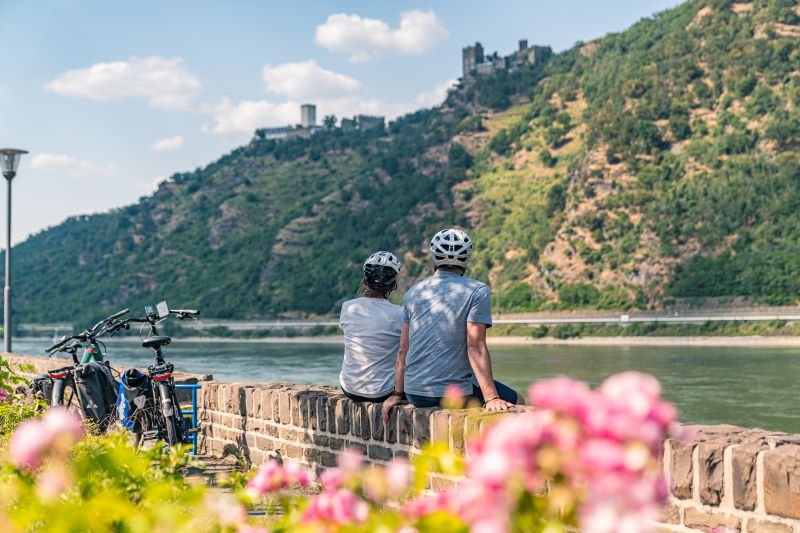 Das enge Tal mit den steilen Weinbergen beeindruckt, hier wächst der weltberühmte Riesling. Hinter jeder Rheinbiegung warten Burgen und Schlösser auf den Radler, die mittelalterlichen Städtchen laden zur Einkehr ein. Radtouren auf dem Rheinradweg lassen sich auch mit einer Schifffahrt kombinieren. Die Ausflugsschiffe fahren meist von April bis Oktober und ermöglichen die Mitnahme von Fahrrädern. Die einzigartige Kulturlandschaft des Oberen Mittelrheintals ist so auf ganz besondere Art zu erleben.