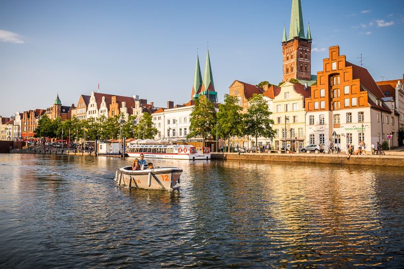 Lübeck. Kaum eine Stadt ist so eng mit dem Wasser verbunden wie Lübeck. Die Trave umfließt als schützender Wassergraben die historische Altstadtinsel, einst pulsierendes Handelszentrum der Hanse. Noch heute sind die Flüsse, Kanäle und Hafenbecken stille Zeugen dieser Geschichte – und zugleich lebendige Bühne für Freizeit, Natur und maritime Entschleunigung. Gemeinsam mit dem Ostseebad Travemünde bildet Lübeck ein einzigartiges Doppel aus Backsteingotik und Meeresbrise, aus UNESCO-Welterbe und Strandgefühl.