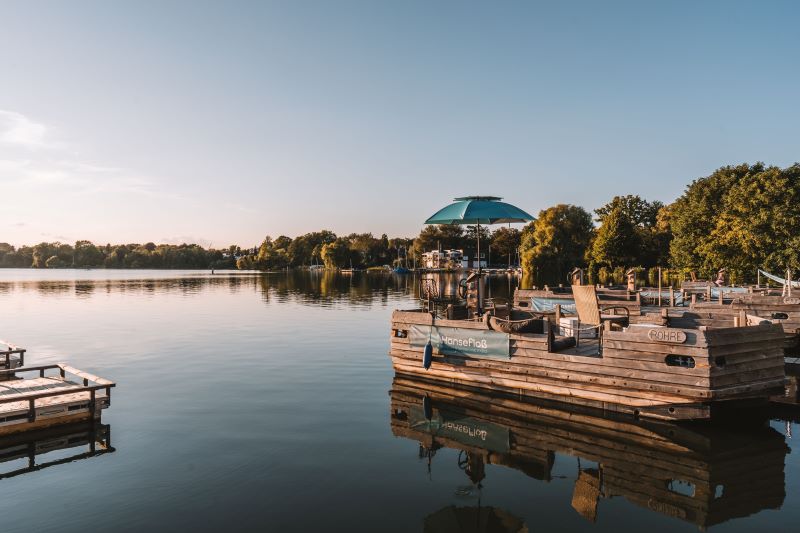 Besonders stimmungsvoll wird das Erlebnis mit den elektromotorisierten Hanseflößen von EXEO, die direkt am liebevoll sanierten Bootshaus Marli im Drägerpark starten. Ob mit Skipper oder selbst am Ruder – die führerscheinfreien Flöße bieten Platz für sechs bis zwölf Personen und gleiten nahezu lautlos durch das Naturschutzgebiet der Wakenitz. Sonnenuntergänge, Vogelstimmen, Fischbrötchen in der Hand – hier trifft Ursprünglichkeit auf Genuss. EXEO bietet auch geführte Touren, Verleih und Gruppenangebote für Naturfans, Familien und Teams. Seit 2023 erstrahlt das Bootshaus in neuem Glanz: EXEO und Fangfrisch haben es gemeinsam wiederbelebt und schaffen mit Kaffee, Kuchen, Grillabenden, Live-Musik und dem hauseigenen „Moinsener Pils“ eine entspannte Atmosphäre am Wasser.