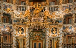 Still used for performances today, the opera house is a box theatre made completely of wood whose lavish, carved and painted decoration is like no other in the world. The Margravial Opera House was also one of the reasons for the composer Richard Wagner choosing Bayreuth as a venue for his theatre festivals. Despite being attracted by the unusually large stage for the time, he found that the size and shape of the auditorium made it unfit for his purposes.