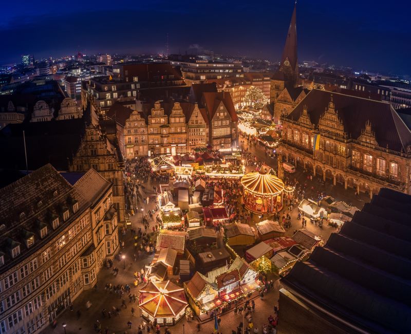 Bremen verwandelt sich in der Adventszeit in eine Stadt voller Lichter, Düfte und winterlicher Magie. Ob traditioneller Weihnachtsmarkt oder mittelalterliches Markttreiben am Flussufer – die Hansestadt bietet eine stimmungsvolle Auszeit vom Alltag und lädt dazu ein, die Vorfreude auf Weihnachten in besonderem Ambiente zu genießen. Zwischen mittelalterlicher Kulisse, kulinarischen Köstlichkeiten und romantischem Lichterglanz wird die Vorweihnachtszeit zu einem Erlebnis – für Bremerinnen und Bremer ebenso wie für Gäste aus aller Welt.