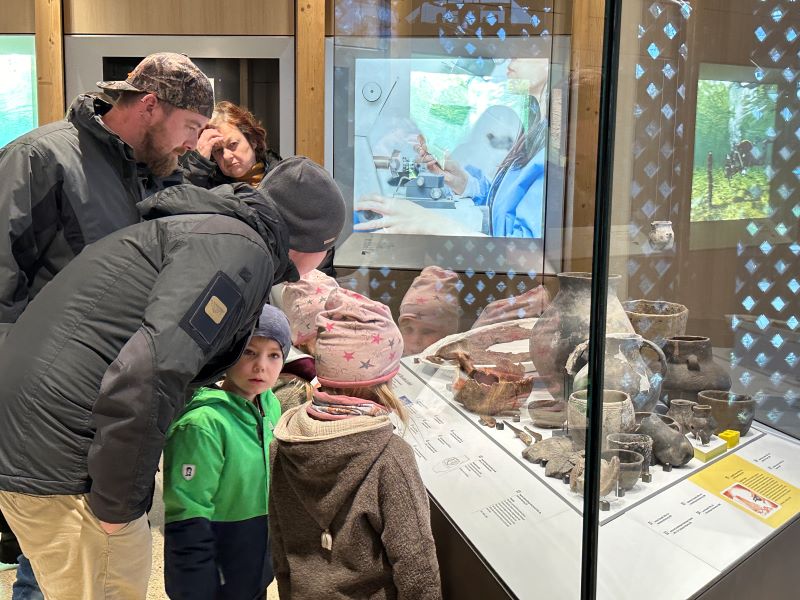 Abseits unseres Besucherzentrums und der Freilichtanlage auf Pfählen gibt es auch an Land so einiges zu entdecken: Im Steinzeit-Parcours finden Kinder und Familien ein reichhaltiges Angebot vor, das von einem Memory-Spiel, einem Pfahlbau-Quiz und einer Flechtwand bis hin zu einer steinzeitlichen „Bohrmaschine“ reicht. In den Ferien und an den Wochenenden zeigt das ebenfalls im Steinzeit-Parcours befindliche Pfahlbau-Kino lehrreiche Filme zum Leben der ersten Pfahlbauer.